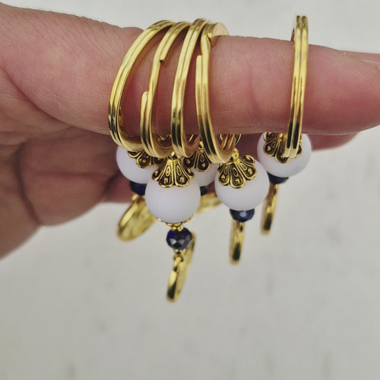 Εικόνα της Παναγίας με διαμοσμητική μεγάλη πέρλα, μικρή πέρλα σκούρο μπλέ navy blue και χρυσά στοιχεία.