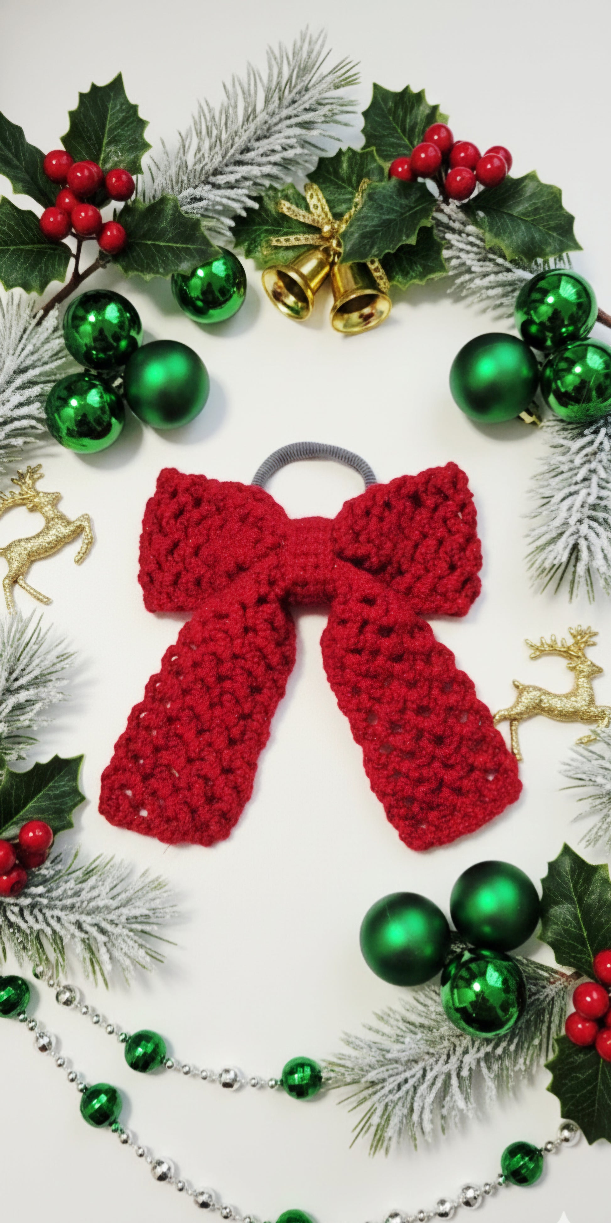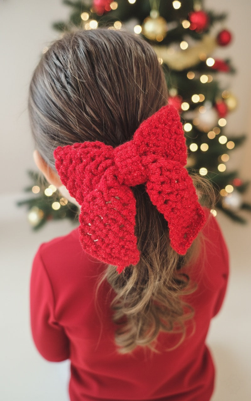 Χειροποίητος Πλεκτός Φιόγκος Μαλλιών - Λαμπερό Κόκκινο