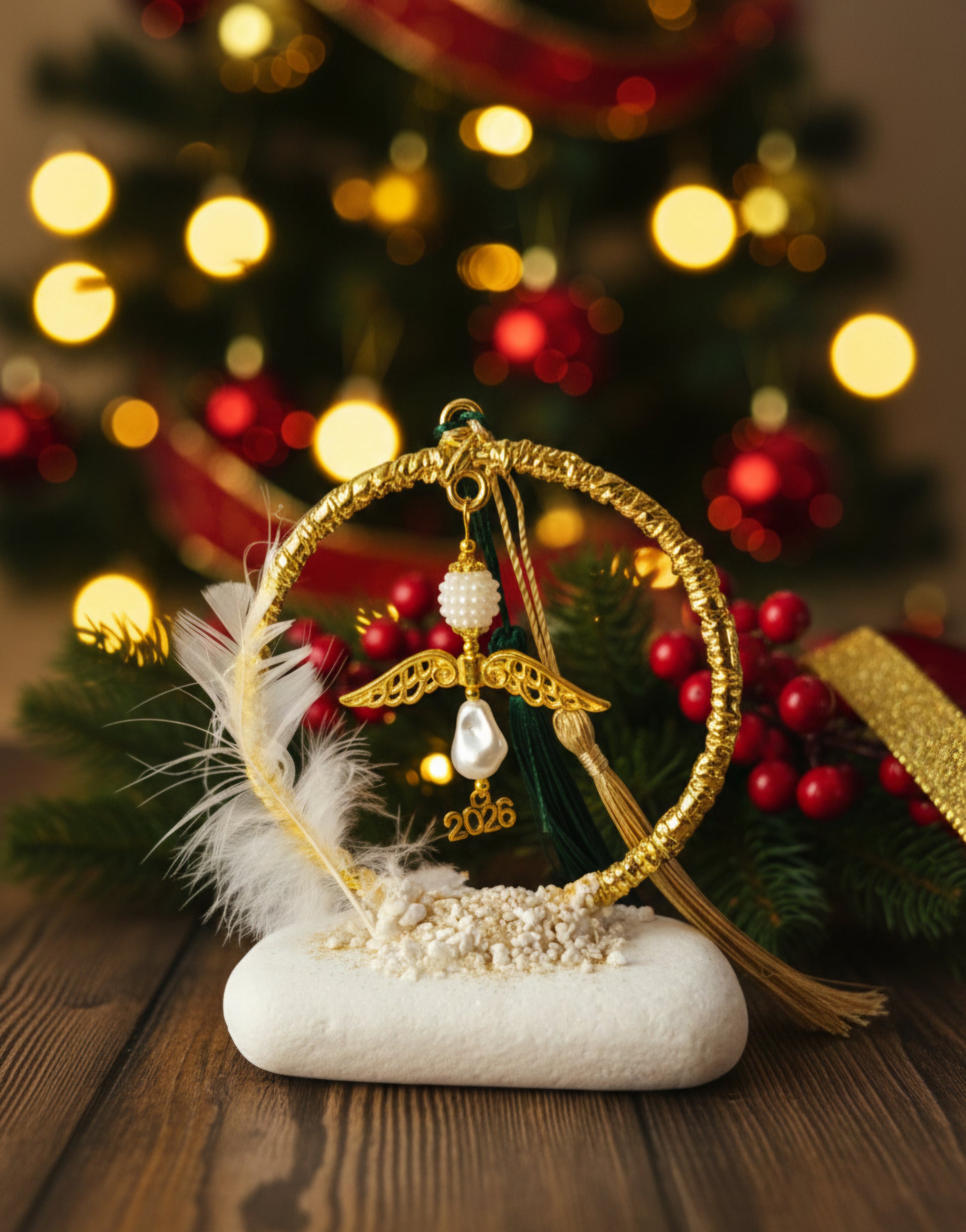 Το Χριστουγεννιάτικο 🎄 Γούρι 2026, "Χρυσός Κύκλος με Αγγελάκι" συμβολίζει την προστασία, τη γαλήνη και τη θετική ενέργεια για το νέο έτος. ✨️🎊